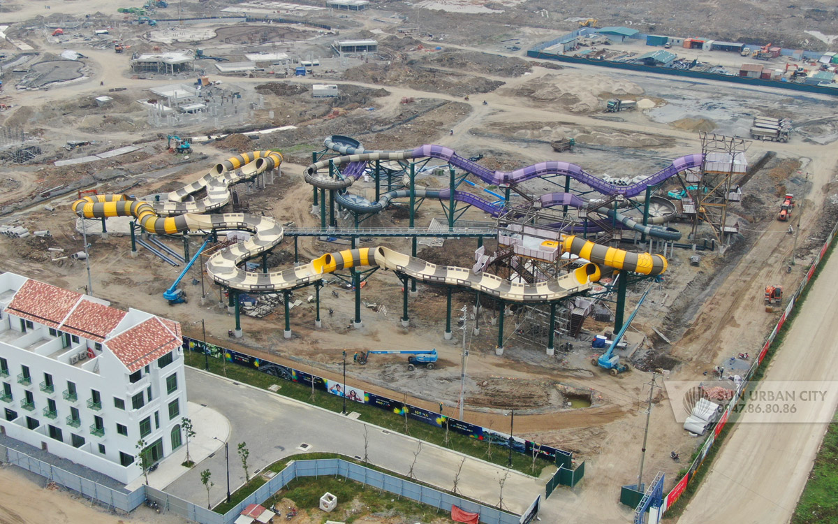 Bên cạnh các công trình nhà ở, hệ thống tiện ích và cảnh quan cũng được đầu tư bài bản. Các đại công viên, trong đó nổi bật là công viên nước Sun World, đang hoàn thiện những hạng mục cuối cùng để kịp khai trương vào dịp 30/4/2025. Đây sẽ là công viên nước đầu tiên trong hệ thống Sun World hoạt động 24/7, đem lại trải nghiệm giải trí không giới hạn cho cư dân và du khách.