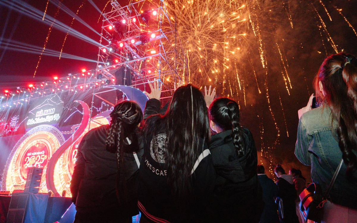 Điểm nhấn của đêm hội chính là màn pháo hoa tầm cao ngoạn mục, thắp sáng bầu trời Hà Nam trong thời khắc chuyển giao năm mới. Hàng nghìn người đã cùng nhau hướng mắt lên bầu trời, chiêm ngưỡng những chùm pháo hoa rực rỡ tỏa sáng, tạo nên một khung cảnh đầy mê hoặc và thiêng liêng.