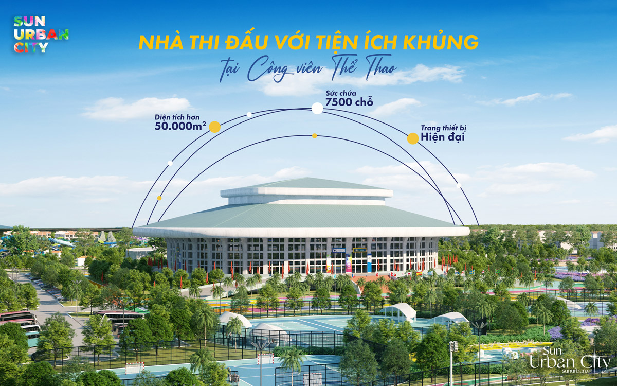 Nhà thi đấu 7500 chỗ tại Sun Urban City không chỉ là một công trình kiến trúc đồ sộ mà còn là điểm hội tụ của những sự kiện thể thao đỉnh cao. Đây sẽ là trung tâm tổ chức các giải đấu từ cấp tỉnh đến quốc gia, thậm chí quốc tế. Không gian rộng lớn, hiện đại và tiện nghi là nền tảng vững chắc để nhà thi đấu có thể đăng cai những giải đấu chuyên nghiệp, góp phần nâng tầm thể thao địa phương.